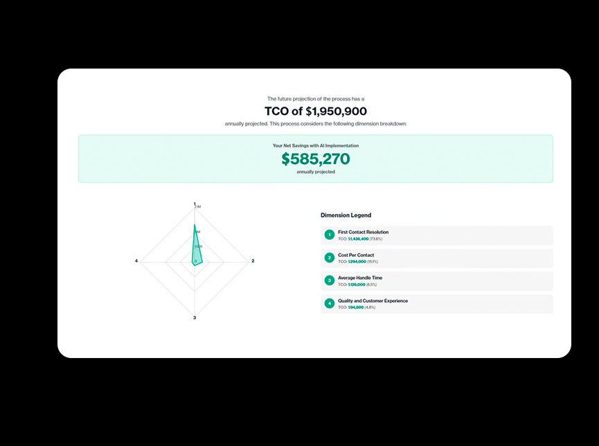 Industry benchmark: Average outsourced agent cost = $3–$6k/month → AI-driven agent replaces dozens to hundreds of seats at a fraction of the cost.