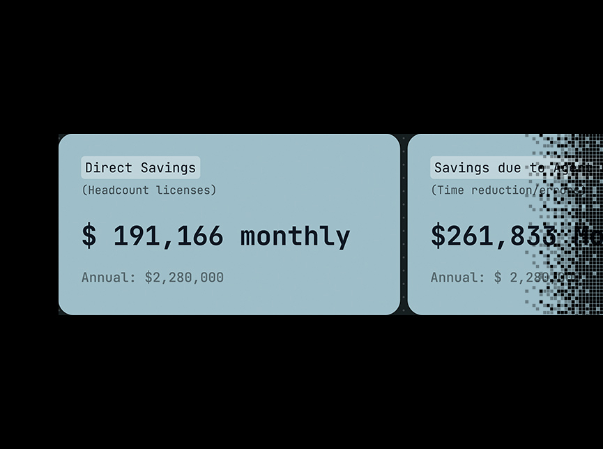 3–6x ROI within 12 months, from combined labor savings, license reductions, and productivity gains.